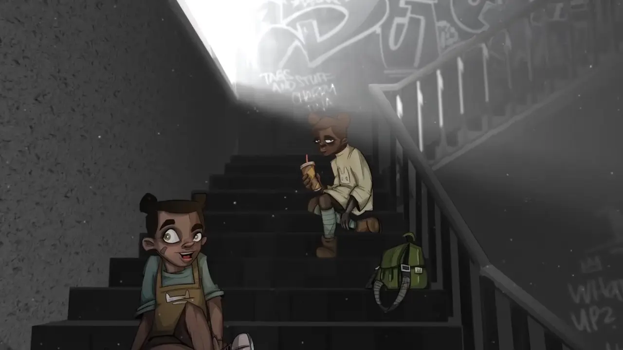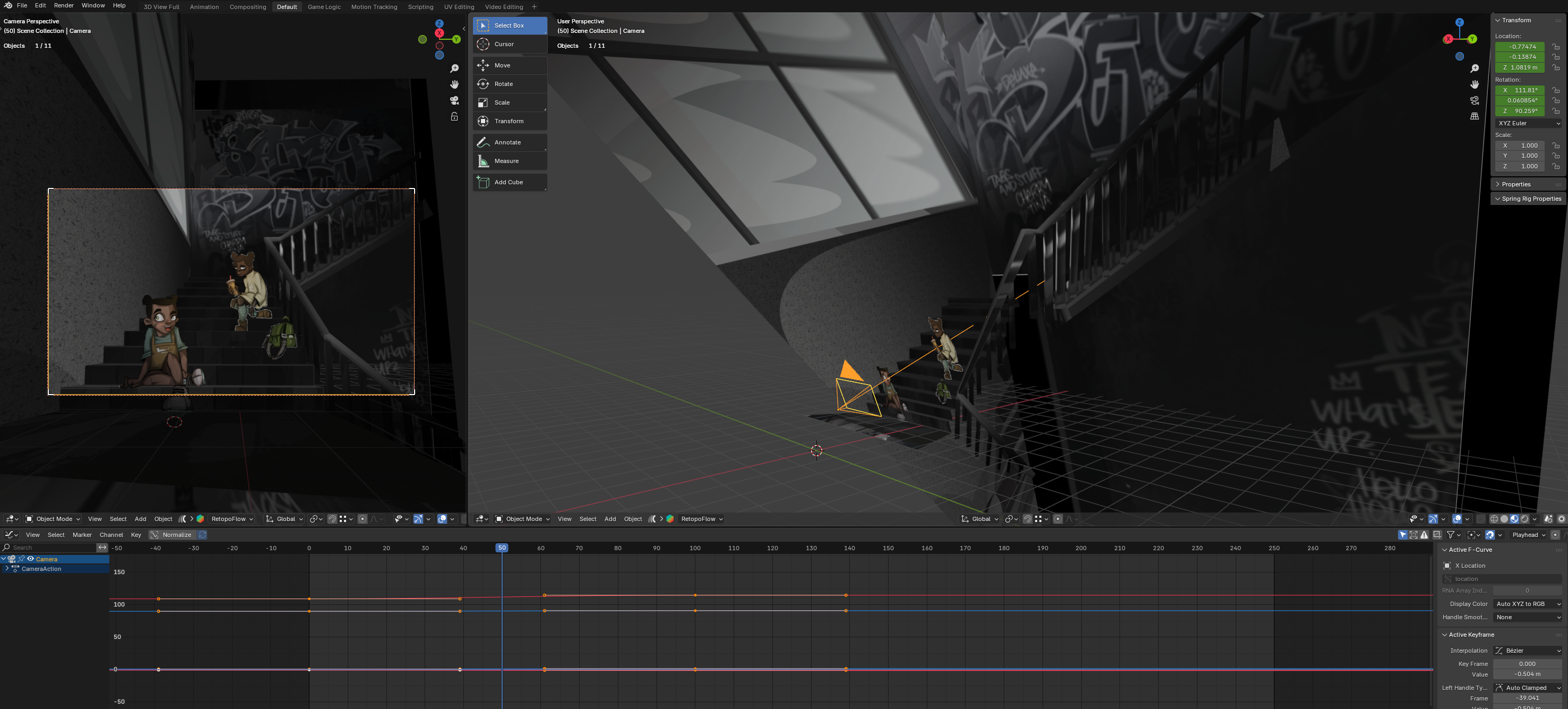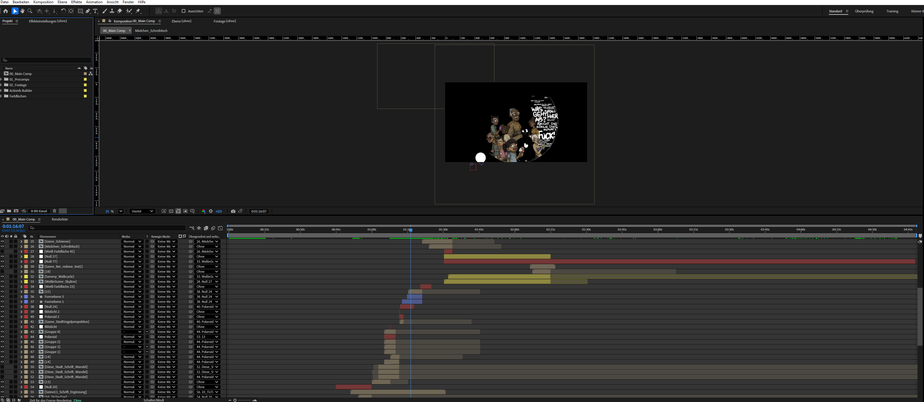 In After Effects erstellte ich die Animationen und baute in Character Animator ein Rig um eine LipSync für einen Abschnitt auf den Protagonisten legen zu können. Einzelne Shots haben mithilfe von Blender mittels Camera Projection Tiefe erhalten.